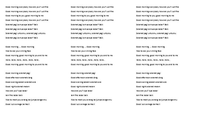 Lagu good morning everybody how are you. Good morning everybody how are you. Fm Ku ada untukmu. Good morning to you.